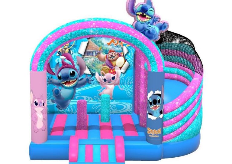 Structure gonflable STICH DIMENSIONS HORS MANCHON A AIR (derriere la structure): PROF : 5M LARG : 4M HAUT : 3M 90KG NOMBRE PARTICIPANTS : 8 max dans le gonflable AGE : de 3 à 77 ans.