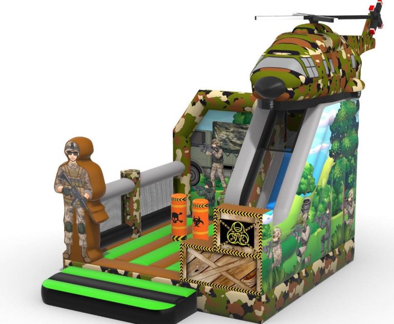 Structure gonflable COMMANDO DIMENSIONS HORS MANCHON A AIR (derriere la structure): PROF : 5M LARG : 5M HAUT : 4M 110KG NOMBRE PARTICIPANTS : 8 max dans le gonflable AGE : de 3 à 77 ans.