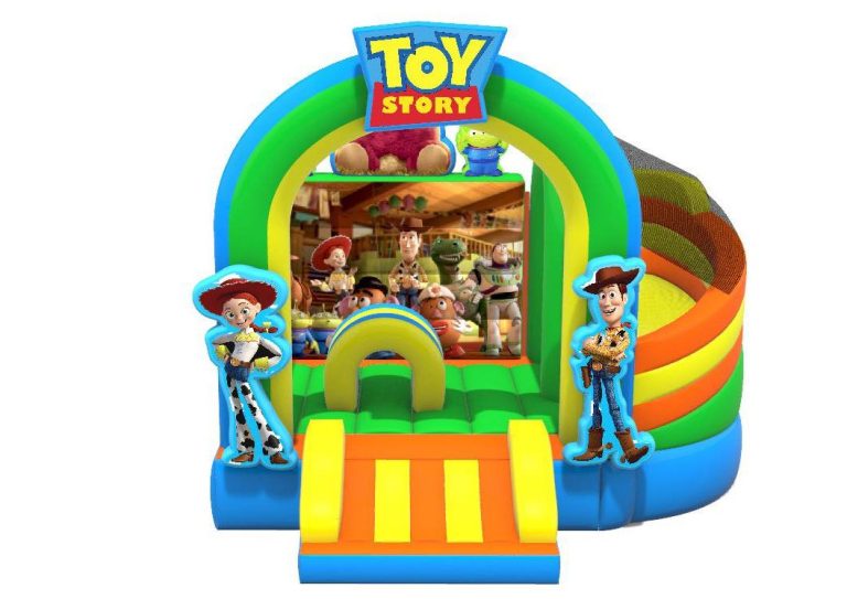 Structure gonflable TOY STORY DIMENSIONS HORS MANCHON A AIR (derriere la structure): PROF : 4M LARG : 4M HAUT : 4M 90KG NOMBRE PARTICIPANTS : 8 max dans le gonflable AGE : de 3 à 77 ans.